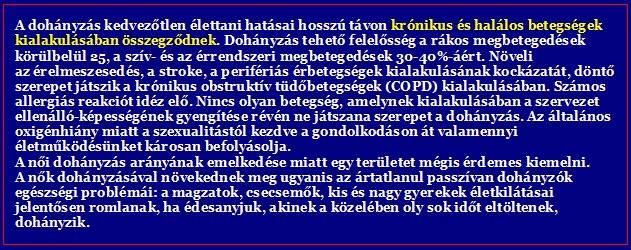 Ebből pedig az következne, hogy az aktív dohányzók egészségkárosodásáért is nagyrészt a passzív dohányzás a felelős, igaz ők gyakrabban vannak kitéve ennek a hatásnak.